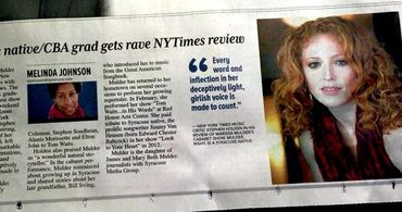 She has taken her shows on the road to London, Dallas, St. Louis, Florida, Colorado, Nebraska, Buffalo, Syracuse, Rochester, Binghamton and many more. Her show "Marilyn In Fragments" earned another rave review from the New York Times who said, "the rising cabaret singer Marissa Mulder wove passages from Monroe’s diaries and 20 songs into a compelling portrait of the star in a confessional mood...a remarkable performance." She has three CD's available for purchase "Two Tickets Left", "Tom...In His Words" and "Illusions" on ITUNES, Cdbaby.com and Amazon.